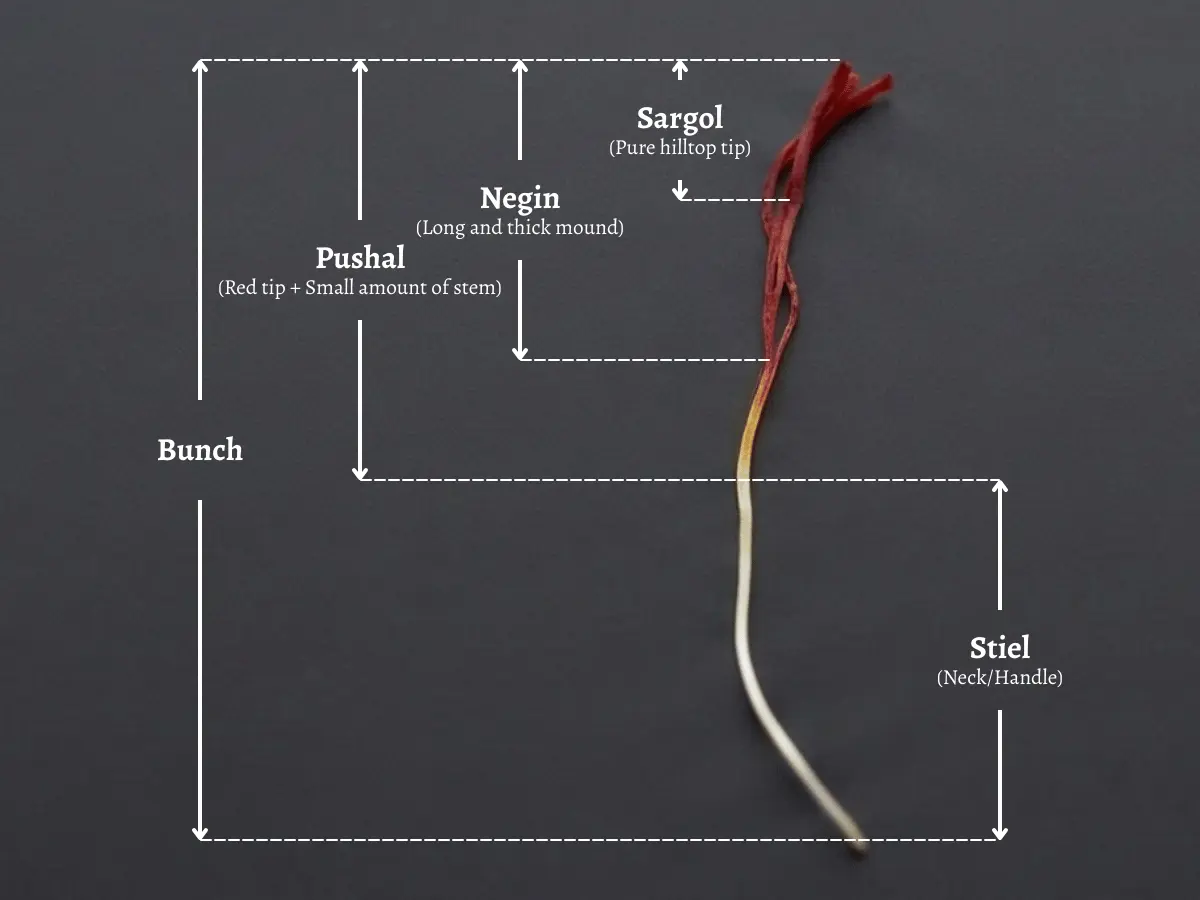 Parts of the saffron stigma [Negin, Pushal, Sargol, Stiel, Bunch]