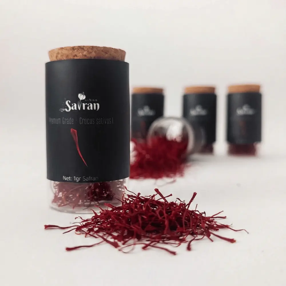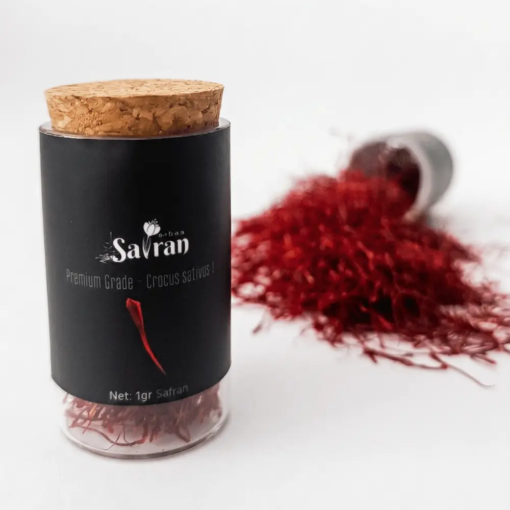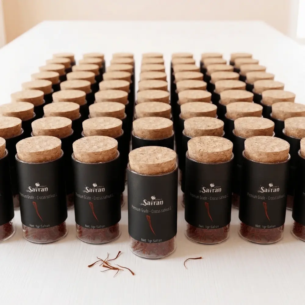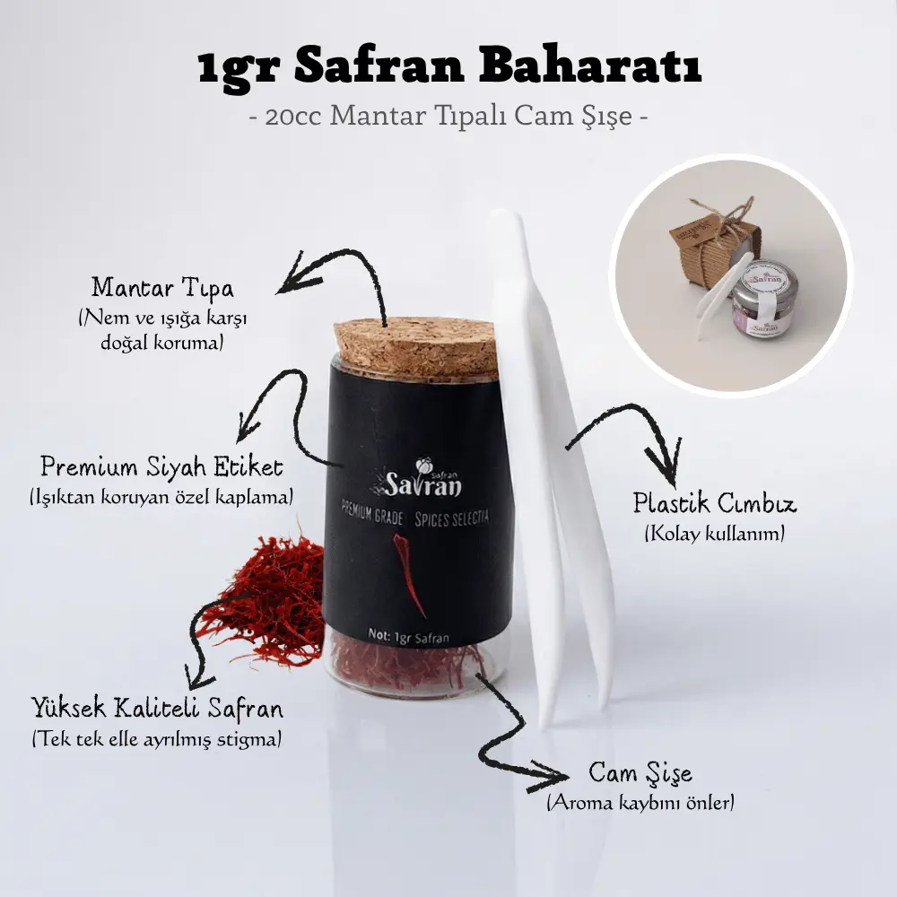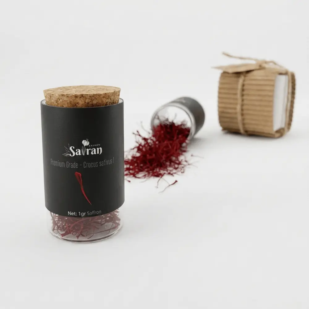 1gr Safran Baharatı – 20cc Mantar Tıpalı Cam Şişe | Siyah Etiket